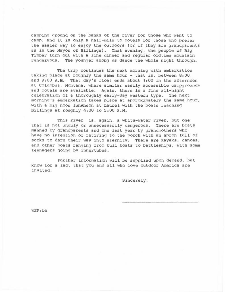 On July, 12, 1963 Billings Mayor Willard E. Fraser embarked on a three day journey from Livingston, MT to Billings, MT. An avid river-runner, Fraser set out on this journey to bring awareness to threats to the wild and beautiful Yellowstone River.